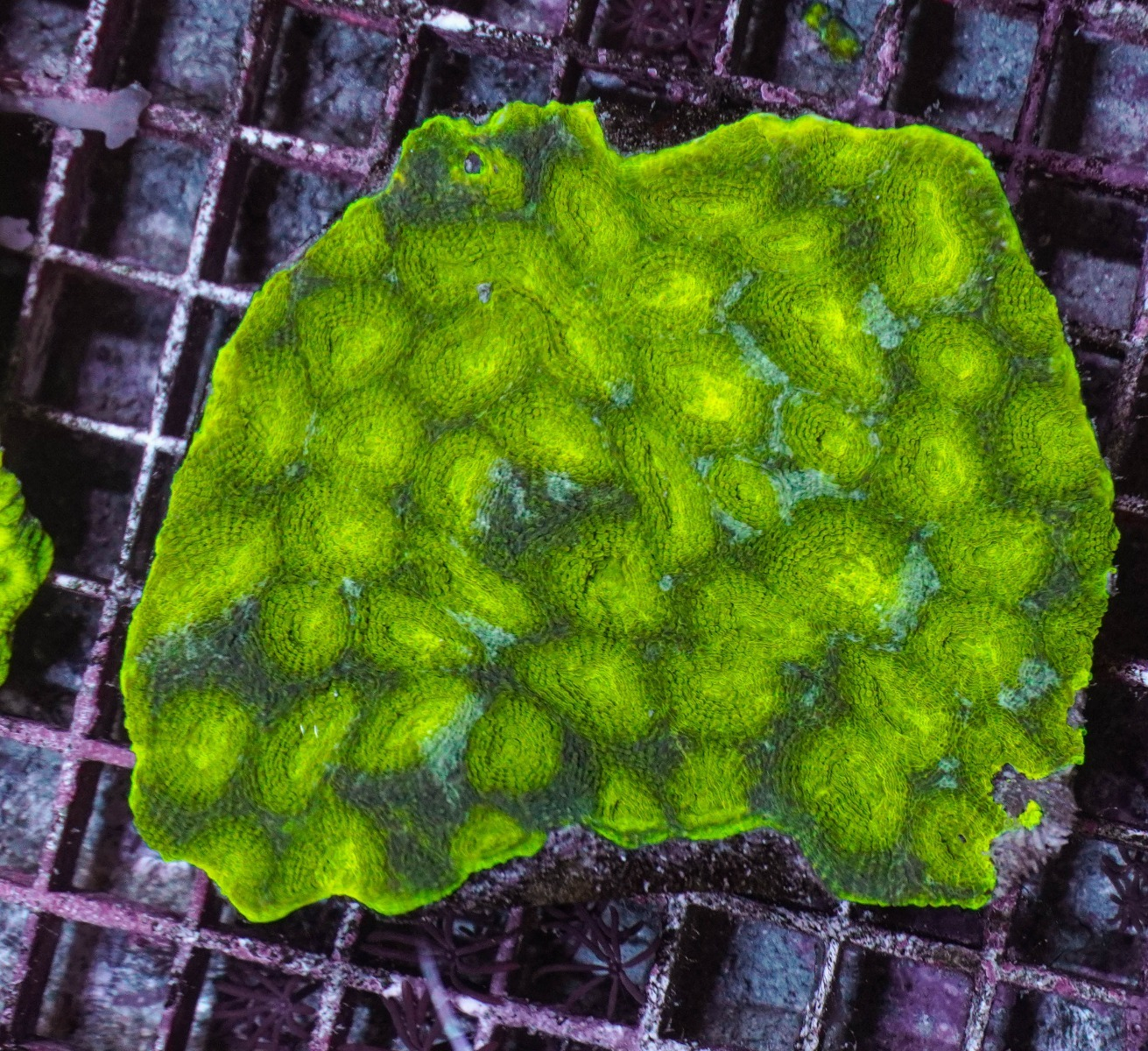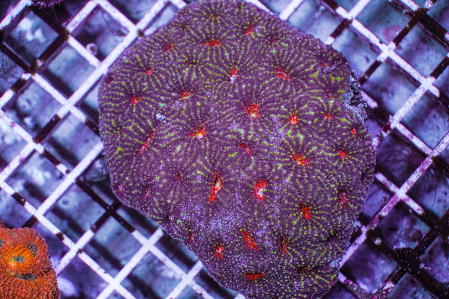 De Acanthastrea echinata is een opvallende LPS-koraalsoort die zich onderscheidt door zijn felle kleuren, complexe patronen en compacte groeivorm. Onze Premium selectie bestaat uit exemplaren met uitzonderlijke kleuring, variërend van fluorescerend groen tot oranje, blauw of paars – een echte blikvanger in elk rifaquarium.