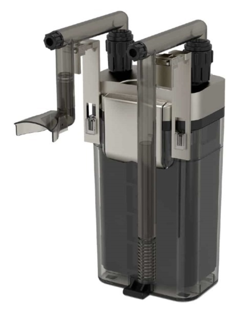 Optioneel is een aparte aansluitkit verkrijgbaar waarmee de filter onder het aquarium in een kast geplaatst kan worden in plaats van hangend aan de glasrand.