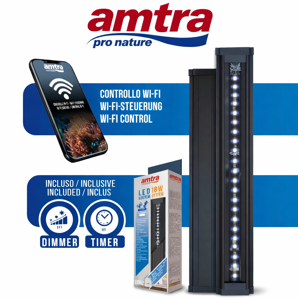 De Amtra LED System Reef Wi-Fi is een gebruiksvriendelijke en efficiënte verlichtingsoplossing voor reefliefhebbers die controle en flexibiliteit willen combineren met een strak design.