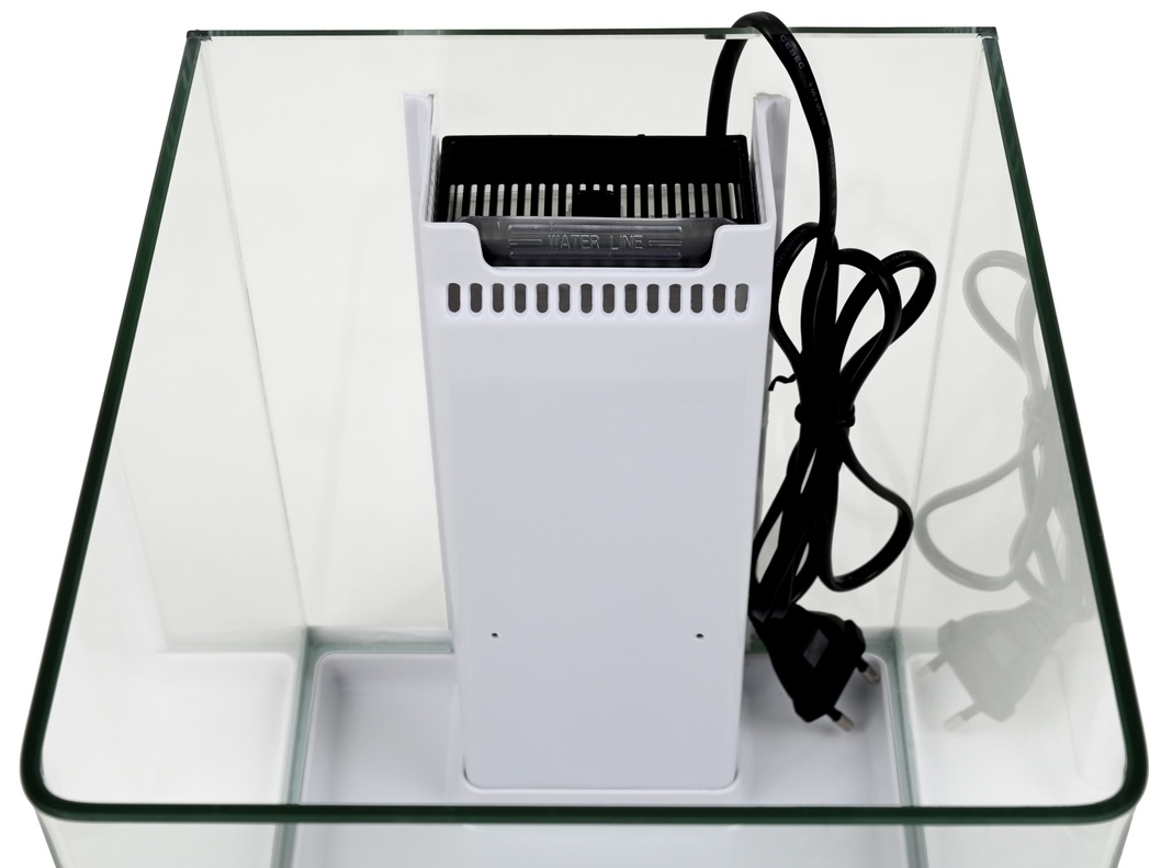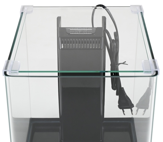Het aquarium is voorzien van helder naadloos frontglas van 4 mm dik, energiezuinige LED verlichting met 21 LED diodes en een intern filtersysteem met een 3-laags mediacartridge voor effectieve mechanische en biologische filtratie.