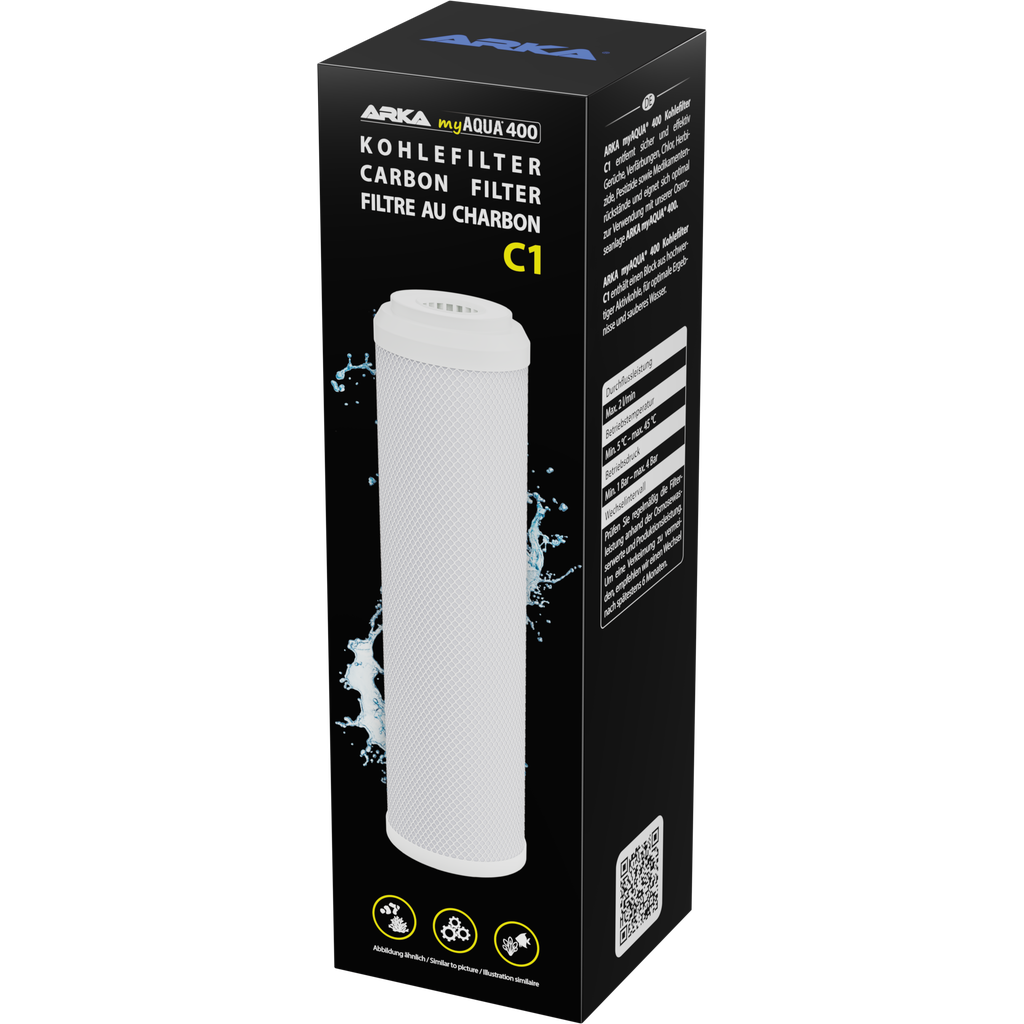 ARKA-MAFS ARKA myAQUA® koolstoffilter verwijdert veilig en effectief chloor, herbiciden, pesticiden en farmaceutische resten, waardoor het ideaal is voor gebruik met veel in de handel verkrijgbare osmosesys...