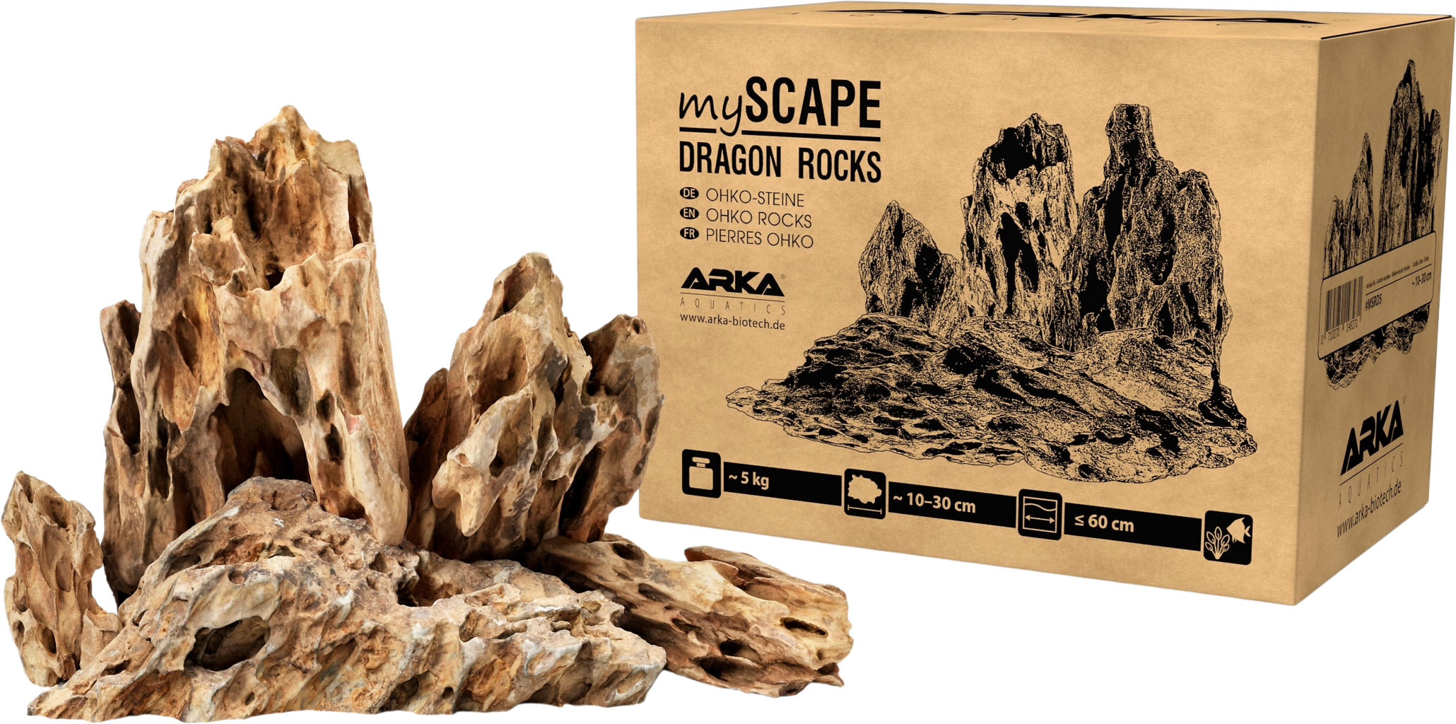 ARKA Aquatics myScape-Rocks Dragon zijn gemaakt van een natuurlijke kleisteen, die perfect is voor spectaculaire en unieke aquascapes, zoals B. Iwagumis, in elk zoetwateraquarium en structuren in elk terrarium.