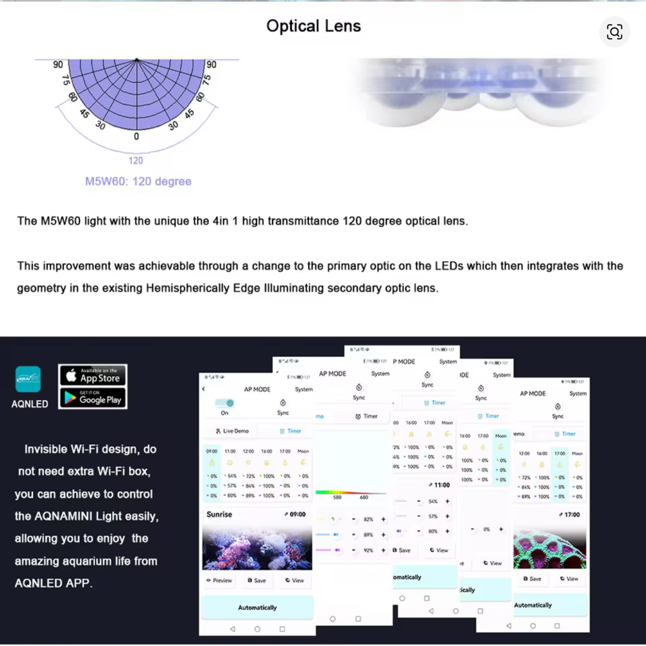 De ASAqua no5 60W LED verlichting (WiFi) is een innovatieve en krachtige ledlamp, speciaal ontworpen voor het optimaal verlichten van zeeaquaria. Dankzij de geavanceerde LED-technologie biedt deze lamp een volledig spectrum dat zorgt voor een gezonde groei van koralen en een natuurlijke uitstraling van uw onderwaterwereld. Met de geïntegreerde WiFi-functie bedient u eenvoudig de lichtintensiteit en kleurtemperatuur via een handige app, waardoor u altijd de perfecte sfeer creëert. De ASAqua no5 is energiezuinig, heeft een lange levensduur en is geschikt voor aquaria tot circa 60 cm lengte. Kies voor professionele verlichting die uw zeeaquarium laat stralen en het welzijn van uw vissen en koralen bevordert.
