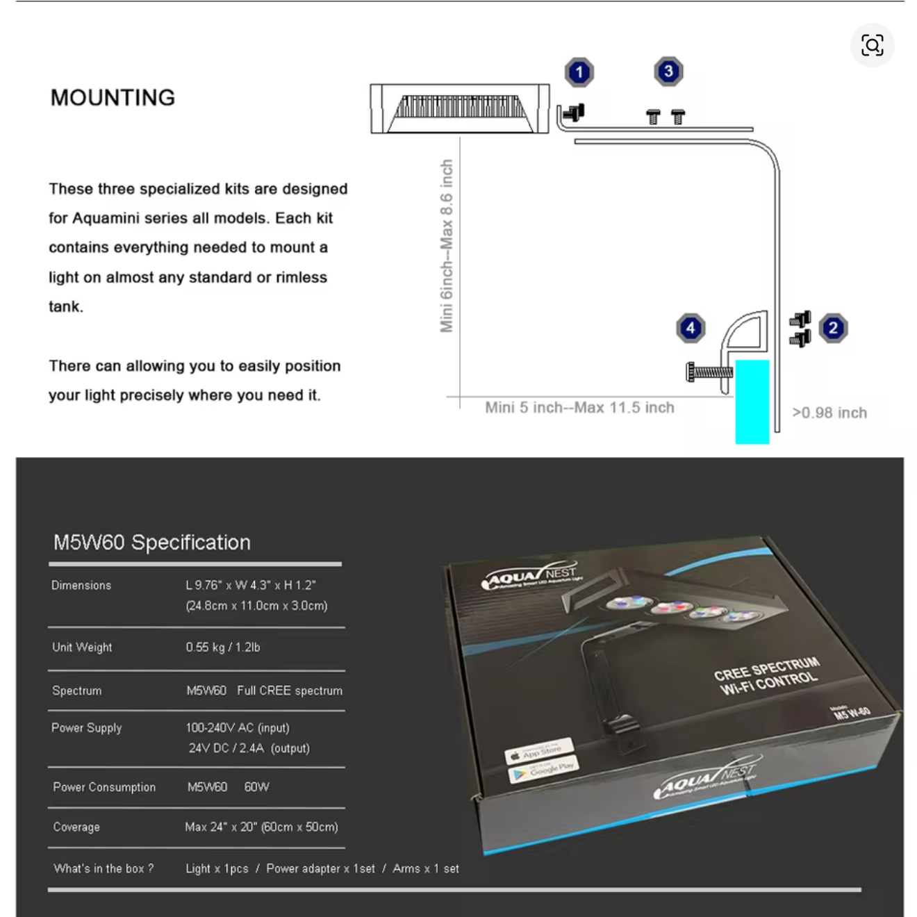 De ASAqua no5 60W LED verlichting (WiFi) is een innovatieve en krachtige ledlamp, speciaal ontworpen voor het optimaal verlichten van zeeaquaria. Dankzij de geavanceerde LED-technologie biedt deze lam...