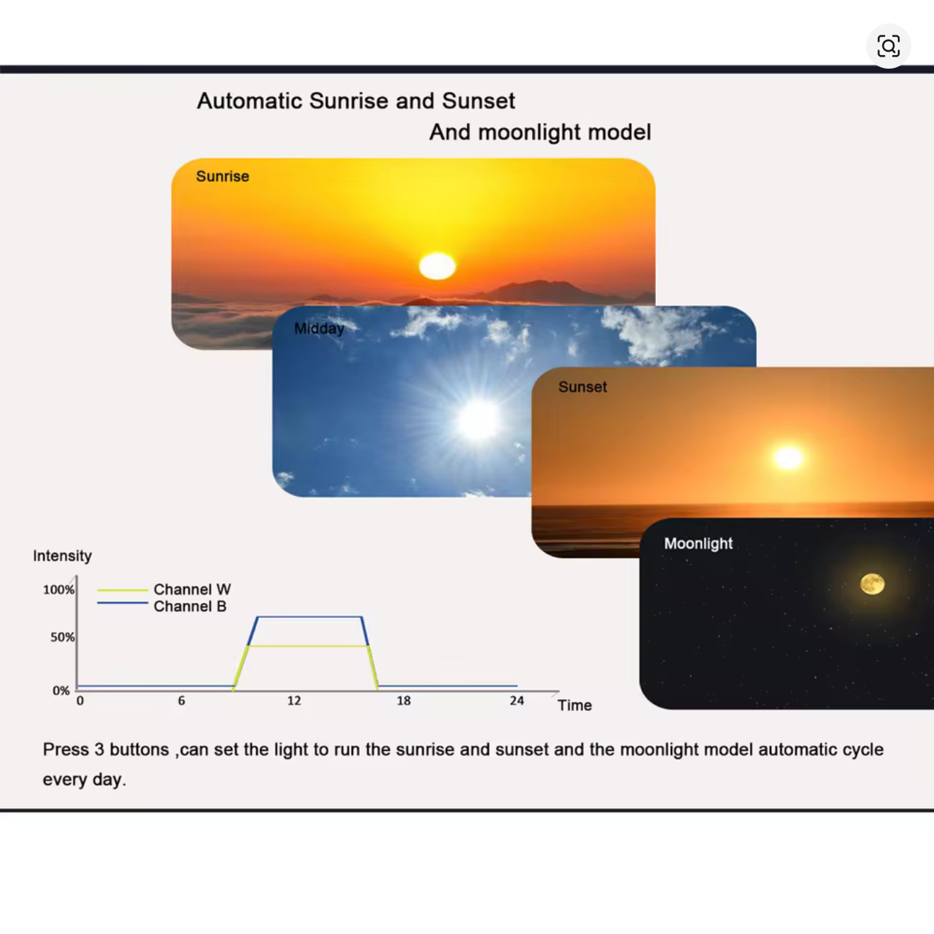 - Stel het gewenste lichtschema, intensiteit en kleur in voor uw aquarium