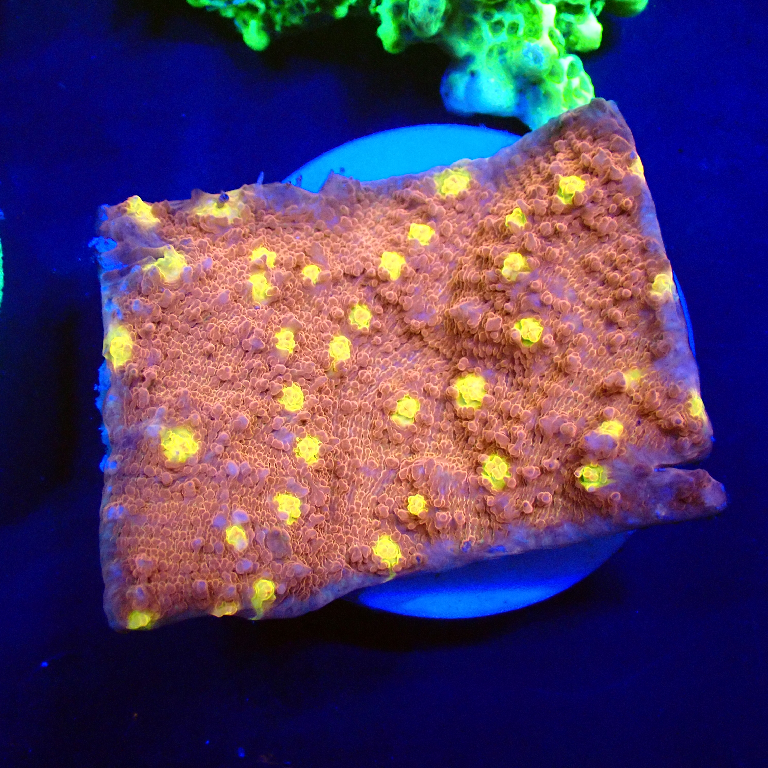 WYSIWYG1754993657079 Uniek stuk WYSIWYG Yellow Submarine Favia koraal. Eén op één, precies wat je ziet! Ben jij op zoek naar een echte eyecatcher voor je rifaquarium? Dit unieke WYSIWYG-koraal is een absolute must-have voor iedere serieuze reefkeeper. Geen stockfoto’s of verrassingen – wat je ziet, is exact wat je krijgt. En wat je krijgt, is spectaculair.
