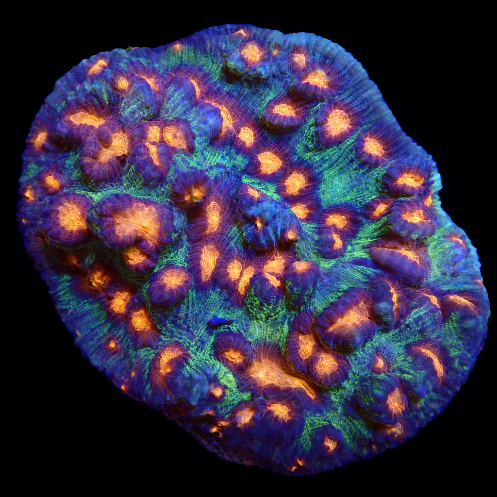 WYSIWYG1754993657079 Uniek stuk WYSIWYG Yellow Submarine Favia koraal. Eén op één, precies wat je ziet! Ben jij op zoek naar een echte eyecatcher voor je rifaquarium? Dit unieke WYSIWYG-koraal is een absolute must-have voor iedere serieuze reefkeeper. Geen stockfoto’s of verrassingen – wat je ziet, is exact wat je krijgt. En wat je krijgt, is spectaculair.