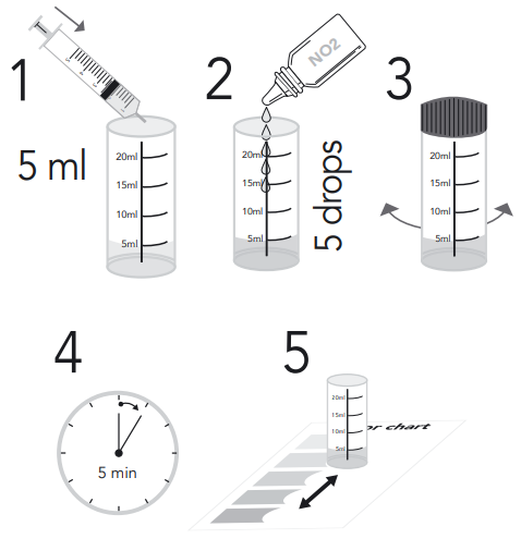 - Voeg 5 druppels NO2 testvloeistof toe