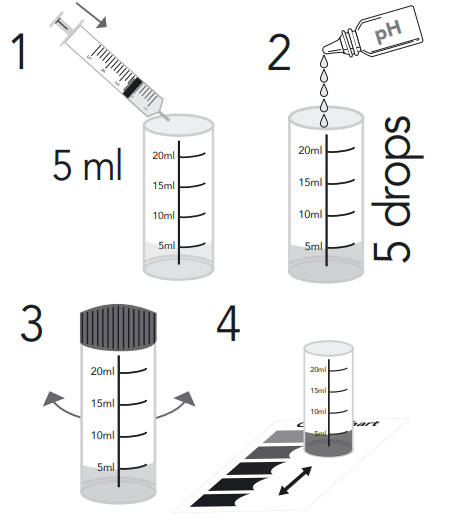 - Voeg 5 druppels pH testvloeistof toe