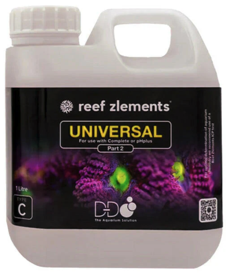Universal is de vernieuwde Deel 2-oplossing en een essentieel onderdeel van het Reef Zlements H2P Doseersysteem. Het bevat ongeveer 72.000 mg/l calcium, maar ook een zorgvuldig uitgebalanceerde mix van 13 essentiële macro- en sporenelementen, cruciaal voor de gezondheid en groei van uw koralen.