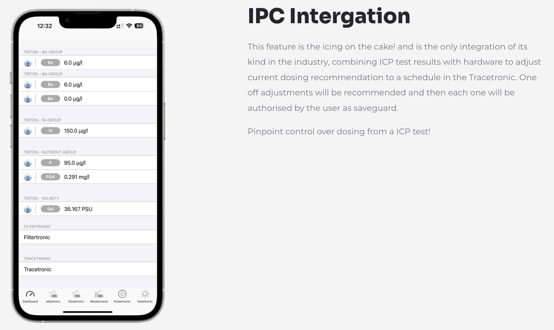 Een unieke functie van de Tracetronic is de integratie met ICP-testresultaten. Op basis van laboratoriumanalyses kan het systeem aangepaste doseerschema’s voorstellen om sporenelementen nauwkeurig te corrigeren.