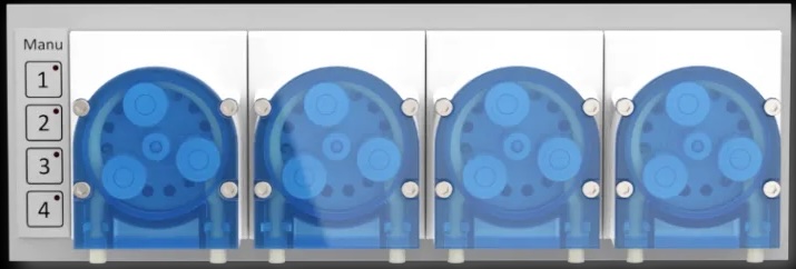 De kit bevat een compleet frontpaneel met vier uiterst nauwkeurige peristaltische pompen van de Doser 3, met: