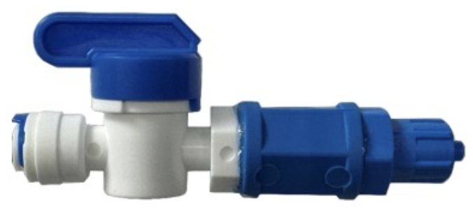 - Bevestig de kogelkraanset tussen twee 4/6 mm slangen.