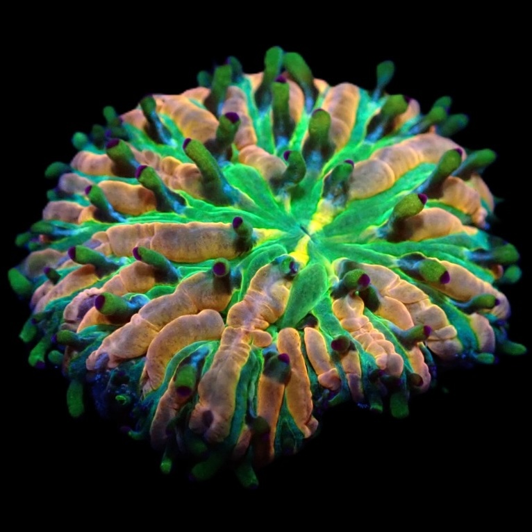 De Heliofungia Fralinae Ultra staat bekend om zijn levendige en gevarieerde kleurpatronen, variërend van levendig groen, blauw en paars tot subtielere tinten. Elk exemplaar is uniek en vormt een visueel feest voor de ogen. Dit koraal gedijt het beste in goed verlichte aquaria met stabiele waterparameters. Het kan zich aanpassen aan verschillende stromingsniveaus, maar een gematigde tot sterke waterstroom wordt over het algemeen aanbevolen. Naast zijn visuele schoonheid biedt de Heliofungia Fralinae Ultra sp ook een belangrijke functie in je aquarium. Het creëert een schuilplaats en leefgebied voor verschillende zeedieren, waardoor een levendige en natuurlijke omgeving ontstaat.