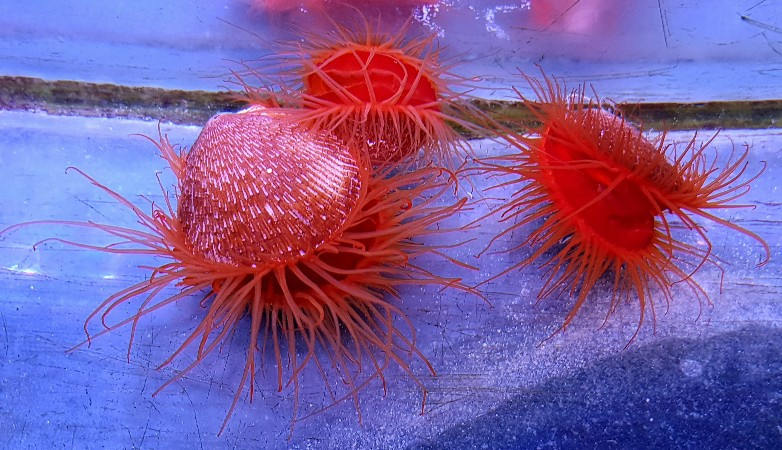De Red Flame Scallop, ook wel Flame Scallop of Red File Shell Clam genoemd, heeft een felrode mantel met rode of witte tentakels.