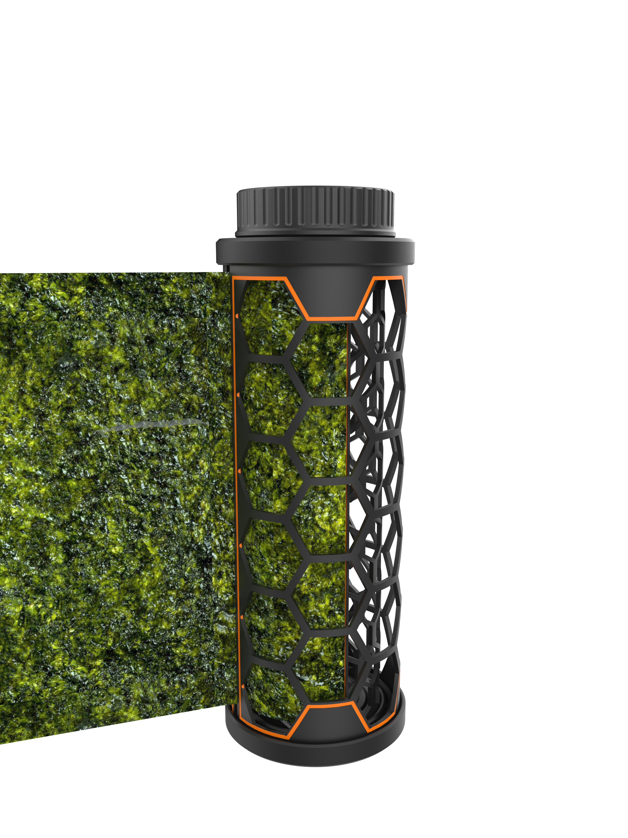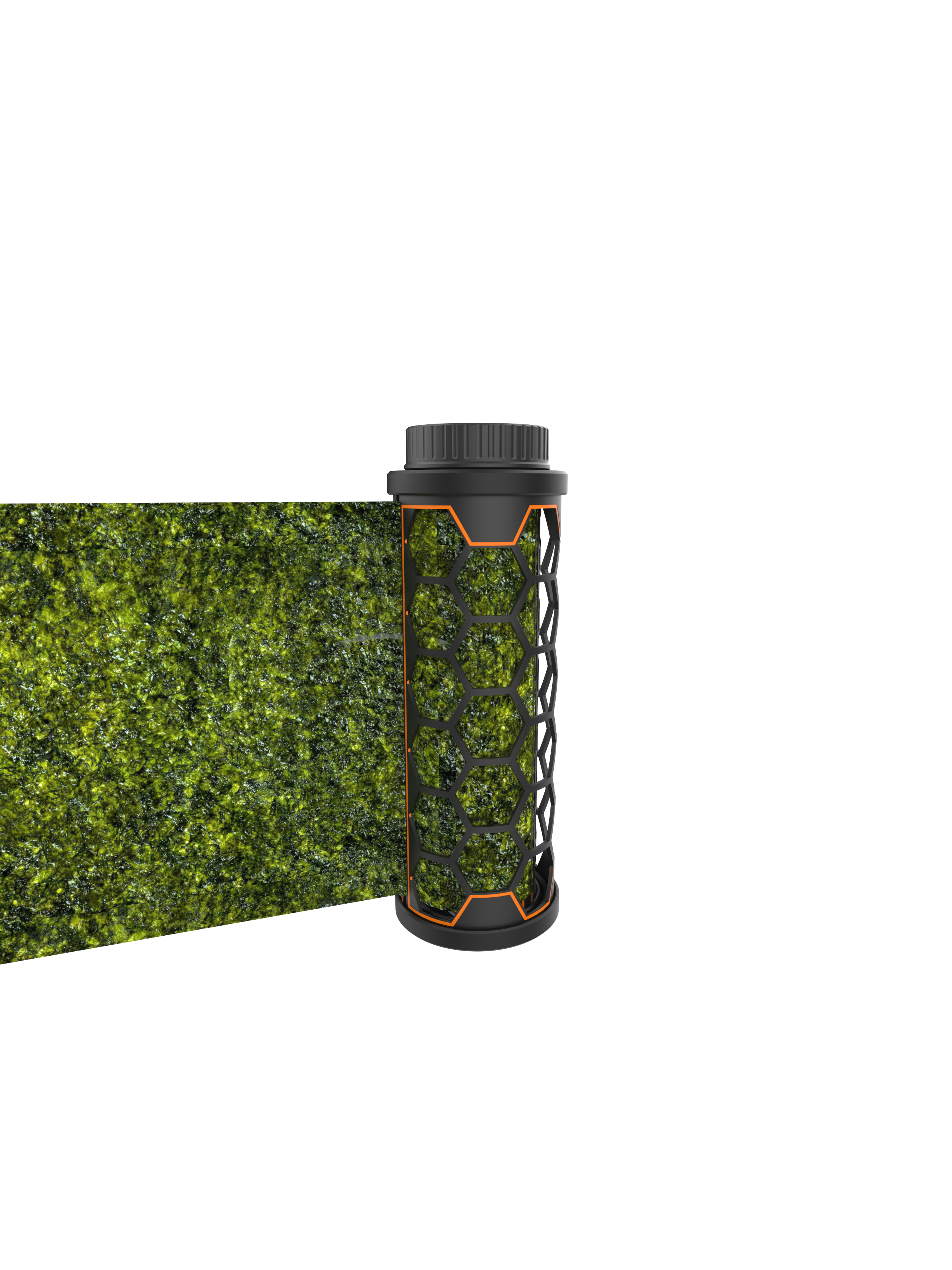 Stop een half vel nori in de gleuf van de feeder en draai de binnen- en buitenkant van de feeder ten opzichte van elkaar. Zo rol je het zeewier netjes op, zonder geknoei of losse onderdelen.