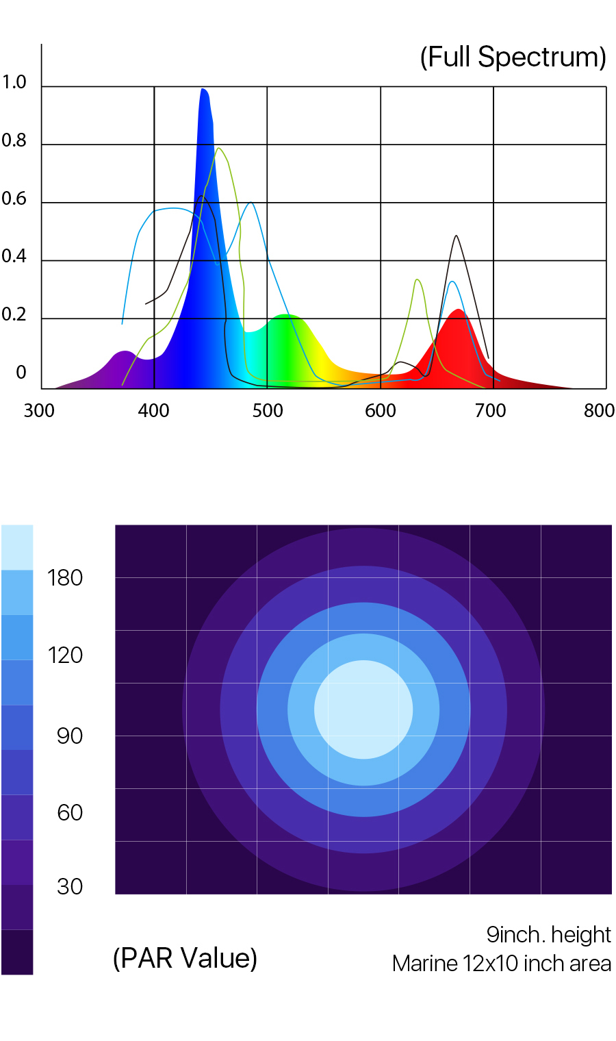 De WRGB-technologie en het uitgebreide marine-spectrum zorgen voor optimale kleurweergave en ondersteunen de gezondheid en uitstraling van koralen.