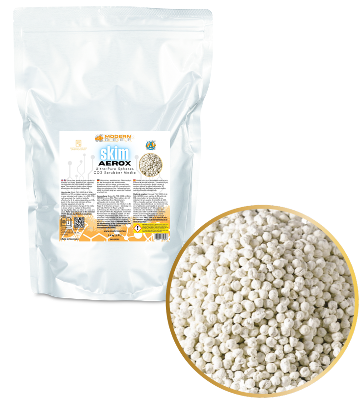 Skim AEROX Ultra-Pure Spheres is een hoogwaardig CO₂-absorberend medium, speciaal ontwikkeld voor gebruik in zeeaquaria. Het medium wordt toegepast op de luchtinlaat van de eiwitafschuimer en helpt de pH-waarde van het aquarium te verhogen en te stabiliseren, vooral in moderne woningen met een verhoogde CO₂-concentratie.