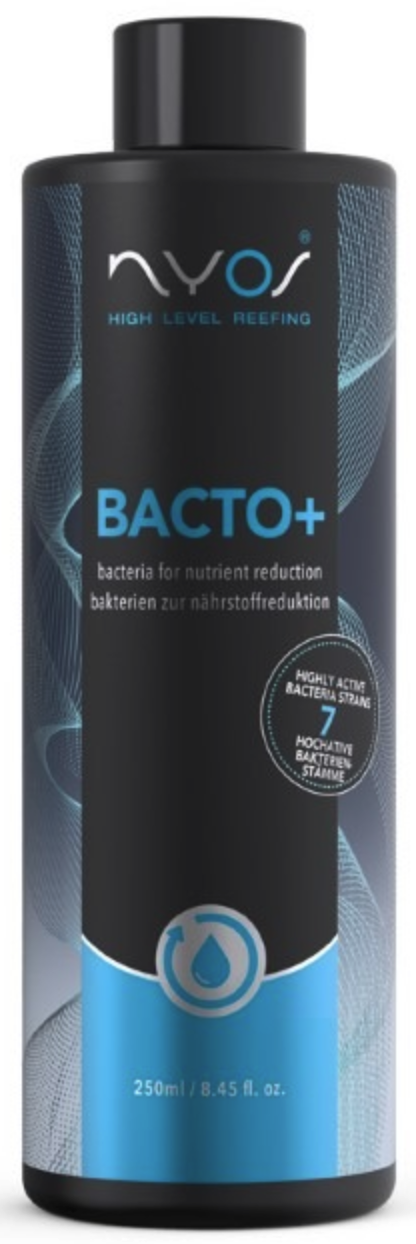 Nyos® BACTO PLUS is een alles-in-één bacteriemix met een breed scala aan toepassingen. Het reduceert nutriënten (nitraat, nitriet, ammonium, ammoniak) en verwijdert slib, detritus en organische verontreinigingen. Het resultaat is kristalhelder, schoon aquariumwater. Nyos® BACTO PLUS verkort de inloopperiode.