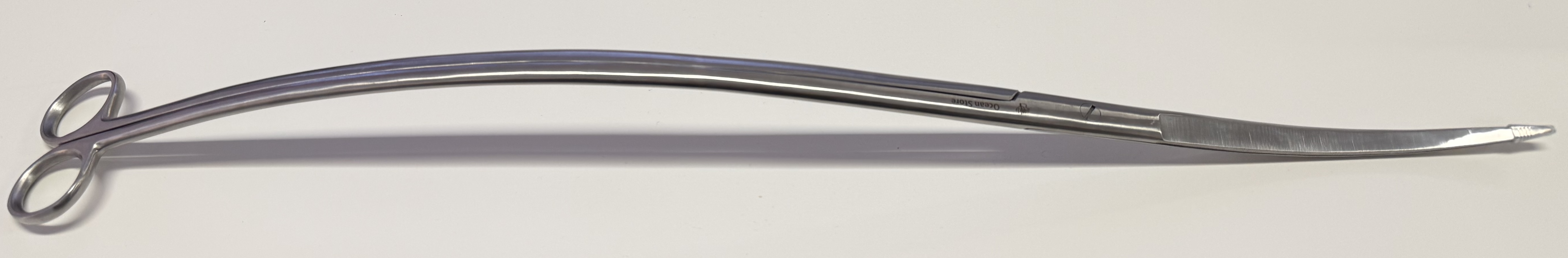 Gebogen (golfvorm) roestvrijstalen schaar voor het snoeien van planten in het aquarium. Makkelijk om recht te knippen lager in de bak.