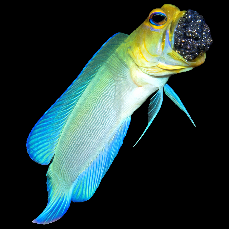 - Gebruikelijke naam: Gele Kaakvis, Yellowhead Jawfish