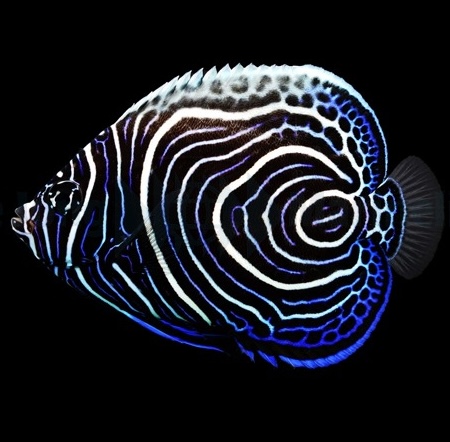 - Grote volwassene: Bij volwassenheid ontwikkelt de vis het iconische keizerlijk patroon met veelvuldige blauwe en gele tinten.