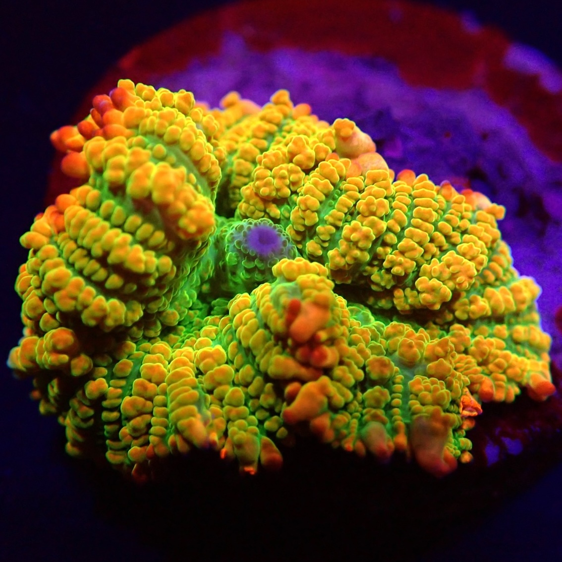 183516425 Rhodactis Rood/Groen Ultra. Mooie felle rood / groene oren met prachtige poliepen. Gemakkelijk te houden en zeer geschikt voor beginners.