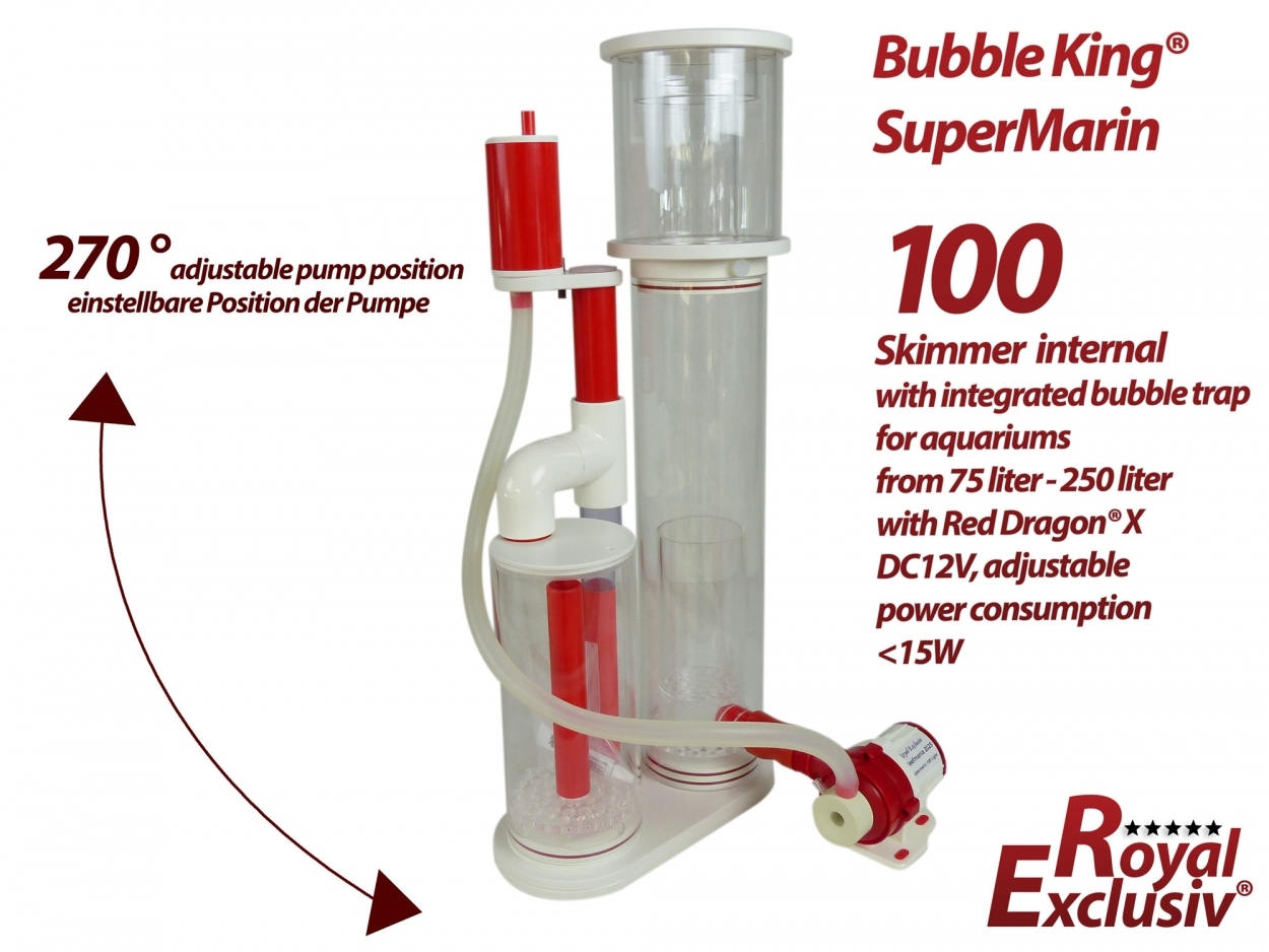 Bubble King® Supermarin 100 RDX met ontgassingskamer – voor aquariums van 75 tot 250 liter De Bubble King® Supermarin 100 RDX met ontgassingskamer is een geavanceerde interne eiwitafschuimer voor zeea...