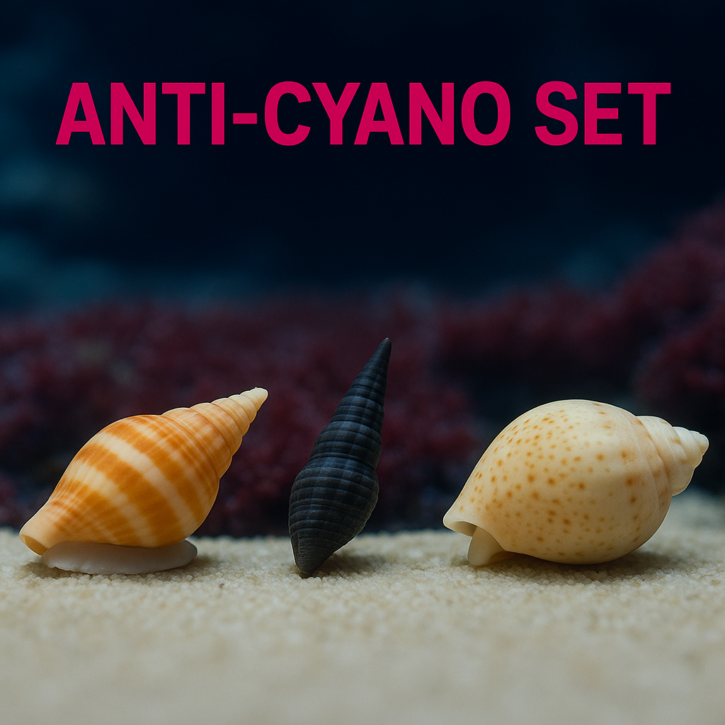 Het Anti-Cyano Slakken Pakket is speciaal samengesteld om op een natuurlijke manier cyanobacteriën te verminderen in nano- en kleinere aquaria. Deze slakken staan bekend om hun efficiënte graasgedrag, waardoor ze helpen het aquarium schoon en in balans te houden.