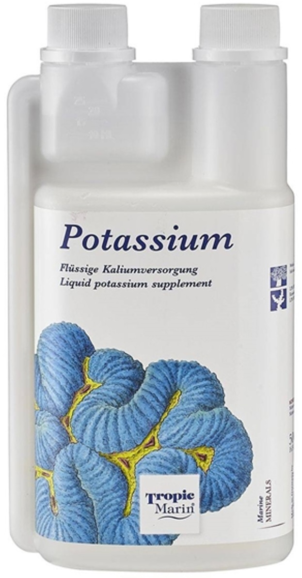 Kalium is een essentiële macronutriënt voor alle levende organismen en komt in natuurlijk zeewater voor in een concentratie van 408 mg/l. Het aanpassen van de kaliumconcentratie aan het natuurlijke niveau met Tropic Marin® Kalium bij een kaliumtekort kan soms een vitaliteitsboost geven aan verschillende koralen.