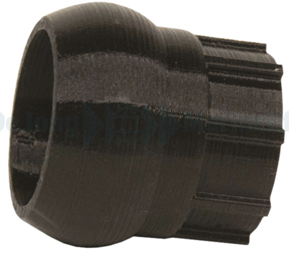 De adapter schuift eenvoudig over de originele 16 mm retouruitlaat en vereist geen gereedschap, lijm of tape voor installatie.